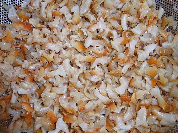 殻から身を取り出し、貝毒(テトラミン)のある唾液腺を取り除きます。