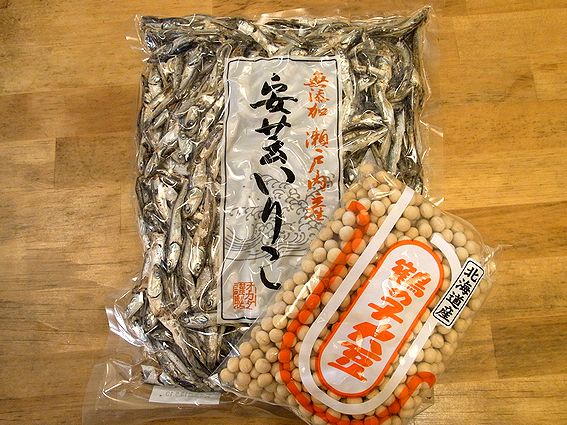 本日は、炒り子(イリコ)と大豆のご飯です。