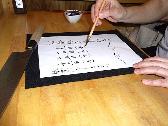 以前の料理屋では毎日献立を手書きしていたのですが、毎日だとサラサラと筆が走ってくれます。