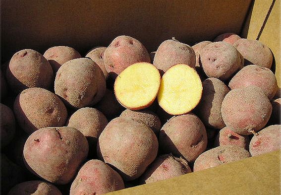 皮は赤くて実は黄色、甘くてホクホクとした食感です。