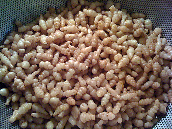 次にチョロギをすり鉢でこすりながら掃除します。