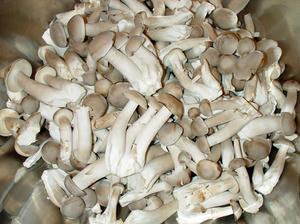 まず、しめじの根元を掃除して、しめじが大きいため粗めにほぐします。