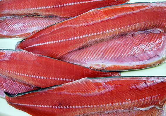 紅鮭を一度酒蒸しにして余分な脂と生臭みを抜きます。