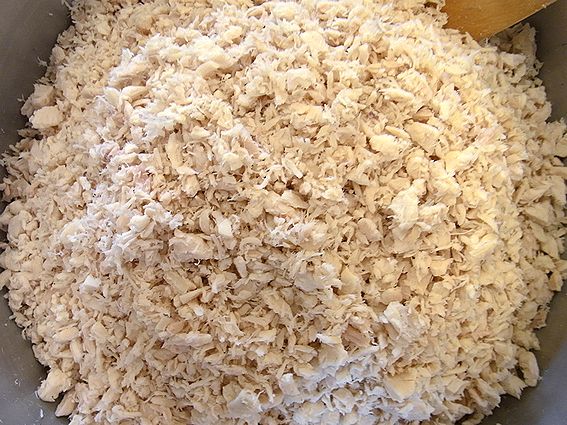 下処理して身をほぐした鮪。このままお出汁で炊飯します。