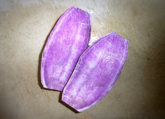 一般に紫色の芋は甘みが少ないと言われますが、この白紫は甘みが強いようです。