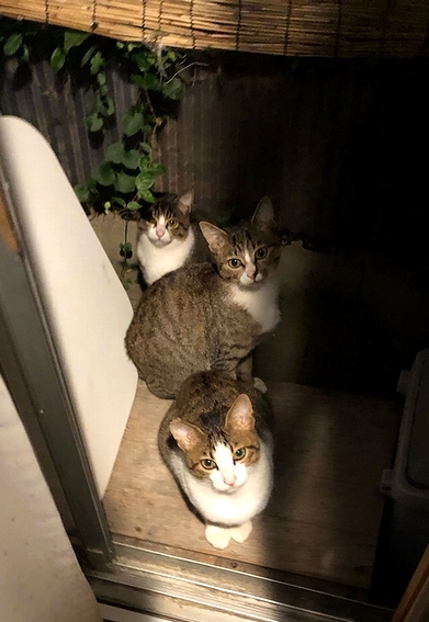以前は玄関周りに居たのですが、最近は台所の勝手口に催促にやって来ます。汗