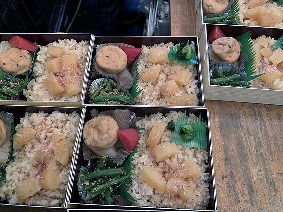 ちなみに先週は、(月)ホタテ貝ご飯 (火)九条ネギご飯 (水)紅鮭とタラコご飯 (木)若ゴボウご飯 (金)数の子ご飯、でした。