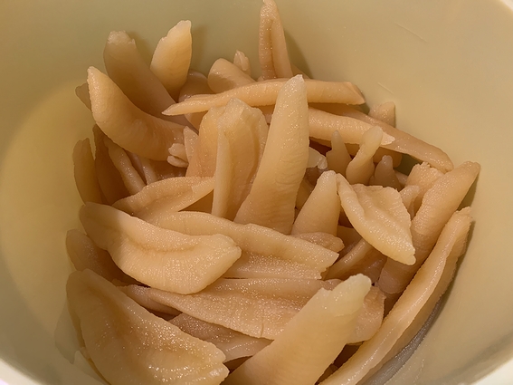 10日から半月ほど、毎日米のとぎ汁を換えて柔らかく戻します。