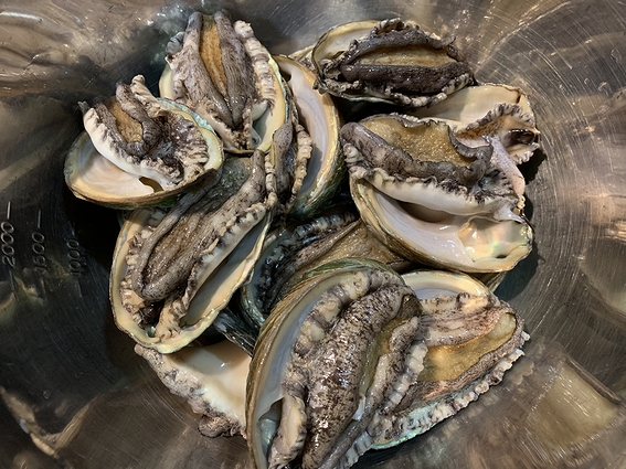 活けの鮑(あわび)を酒と昆布で約3時間半蒸しました。