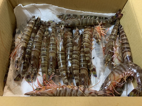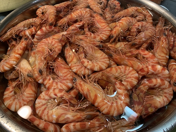 活けの車蝦(くるまえび)の背わたをとり、酒と調味料でサッと煮ます。