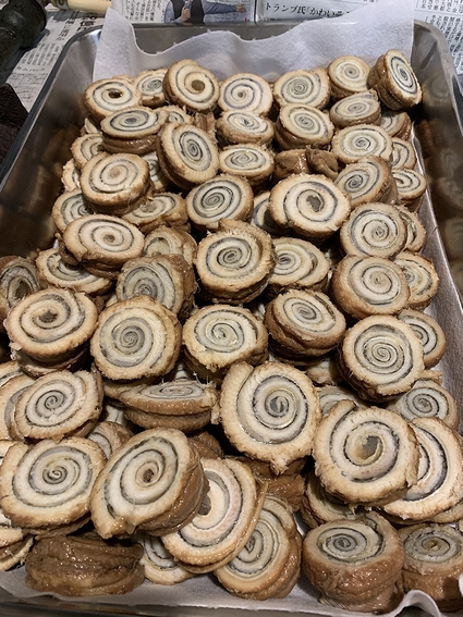 真穴子(まあなご)を掃除して、ぐるぐる巻いて煮付けます。