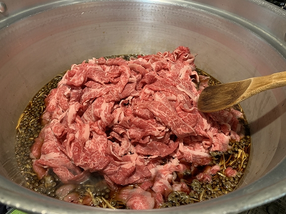 黒毛和牛に生姜と実山椒を入れて時雨煮に。