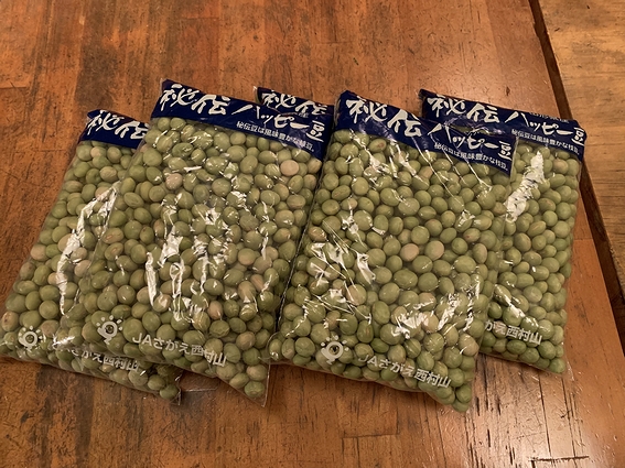 秘伝豆、ハッピー豆といわれる山形の青大豆。