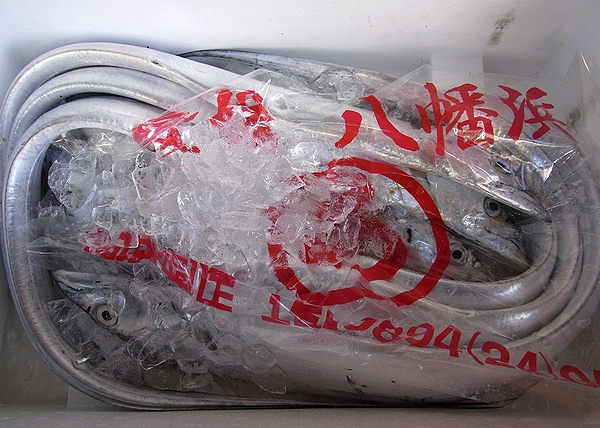 その名の通り、銀色に輝く長い魚体の太刀魚。