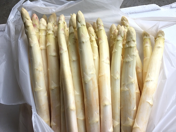 フランス料理にもよく使われるホワイトアスパラガスはグリーンの数倍する高級食材です。