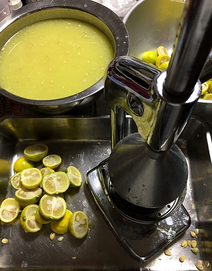 市販の果汁は機械搾りですが、品質では手搾りが勝ります。
