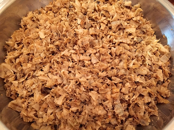 そのスルメをスライスし、昆布とオキアミをミックスして作ります。