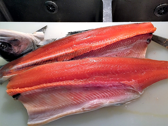 子供の鮭ですから生殖巣が未発達の為、栄養を取られず体力も十分にあり、非常に脂のりが良いとされます。