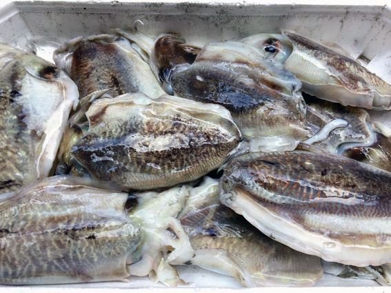 (墨袋がかなり大きなイカです)