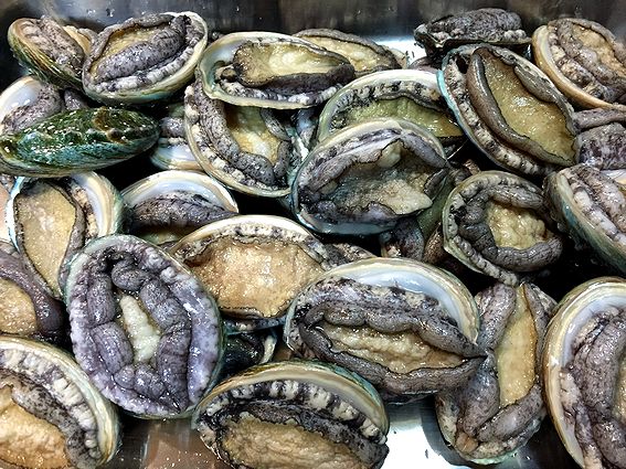 活けのアワビをサッと洗い、酒を入れた鍋で蒸すこと約5時間。