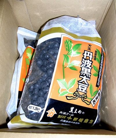 京丹波産の新豆を一晩米のとぎ汁で戻します。