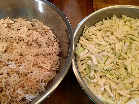 本日は、真菰筍(マコモダケ)と蓮根(レンコン)のご飯です。
