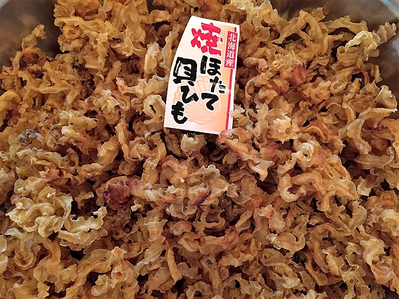 貝ヒモとはホタテ貝のヒモ(外套膜)の部分を原料にした珍味です。