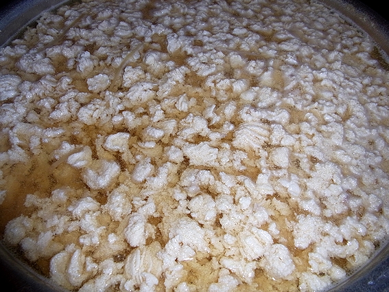 ハモ子を掃除し、水にさらし、熱湯で下茹でします。