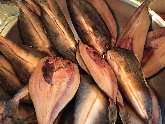 適度に水分も抜けた一夜干しは生より濃厚な食味で断然旨い。