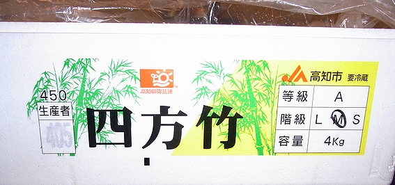 南国市(高知県)の特産品で、秋の1ヶ月間しか出回らない幻の竹の子、四方竹(シホウチク)です。