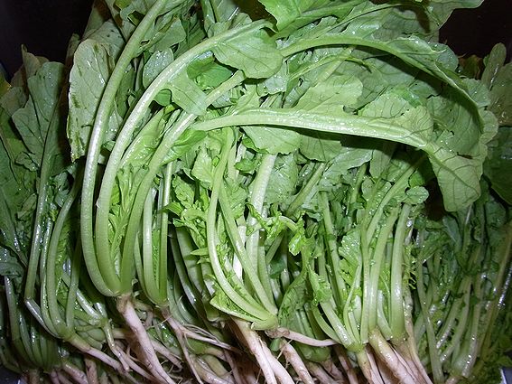 市場では大根葉が並んでいます。