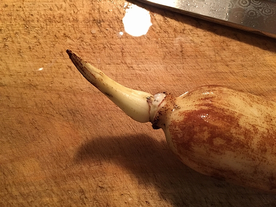 レンコンの芽の部分ですが、新物はサラダで食せます。