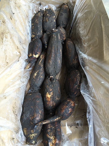 泥付きの新鮮な新レンコン。