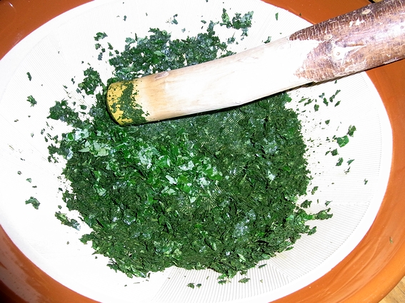 予め葉は叩いておきましたが、けっこう力が必要です。