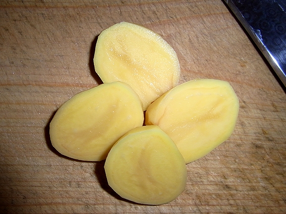 インカのめざめからの交配種で、同じく小粒で切れば黄色みの濃いジャガイモです。