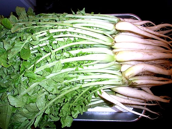 大根葉とも言われますか、葉は細く柔らかく、根(茎?)も辛みが少ないのが特徴です。
