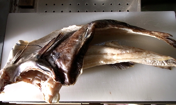 棒鱈とは真ダラを寒風で干したものですが、米のとぎ汁に10日~2週間ほど漬けて戻します。