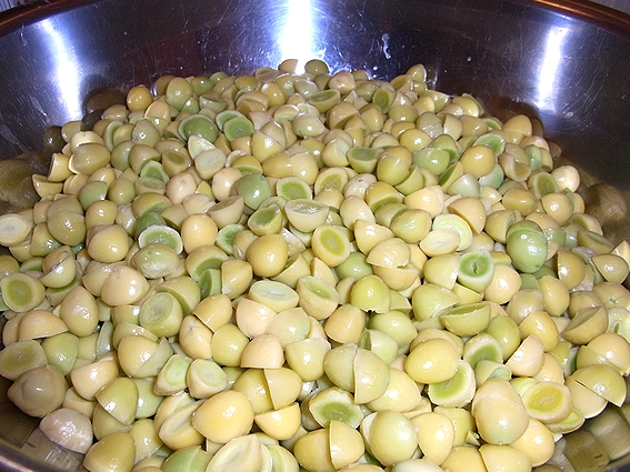 今回の銀杏も、まず外の鬼殻を金づちで割り、手で剥いて、さらに内側の薄皮を剥きます。