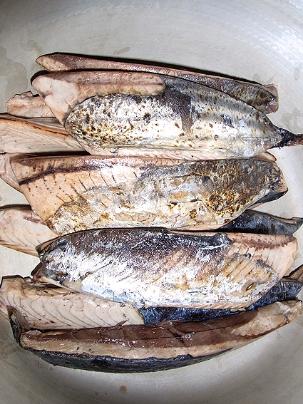 脂もけっこうありますが、せっかくですので皮ごとタタキにし、更に煮付けて炊飯します。