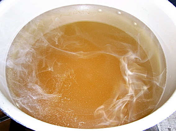 沸騰寸前に鰹節を投入し、弱火でコトコト30分。