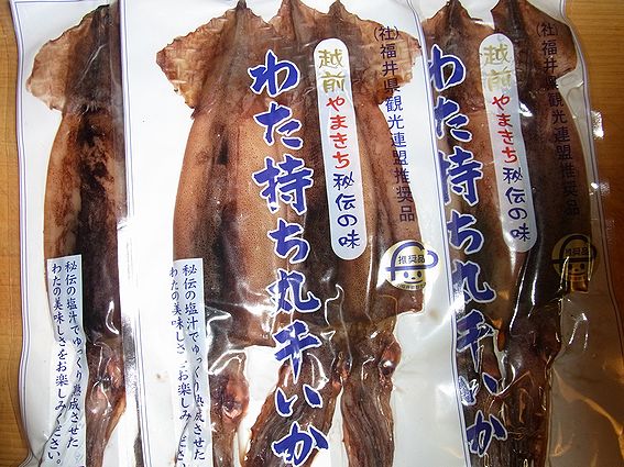 ワタ持ちのイカを丸ごと一夜干しにしたものです。