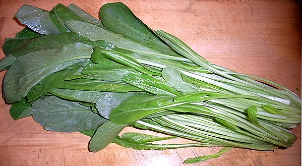 水菜が自然交雑してできたと言われますが、水菜に比べて柔らかく、葉が平たいのが特徴です。